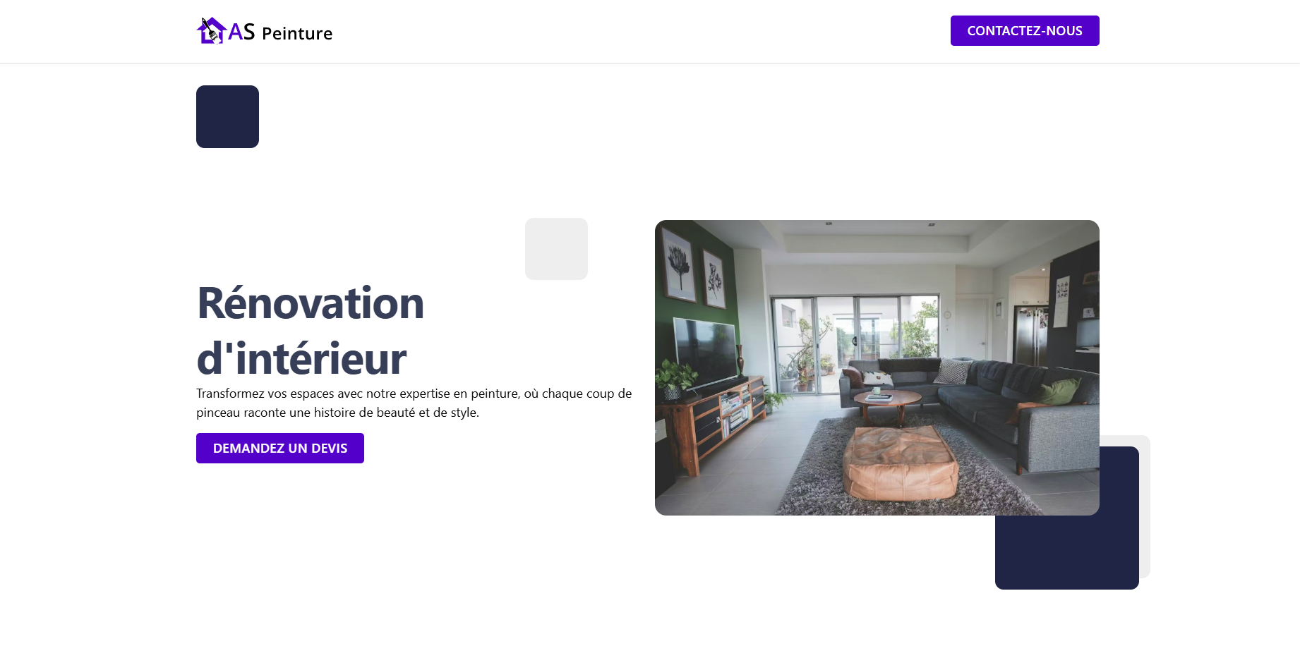 Développement d'un site vitrine one-page pour AS Peinture, une entreprise artisanale spécialisée dans les travaux de peinture intérieure et extérieure. L'objectif était de créer une vitrine digitale mettant en valeur le savoir-faire artisanal et générant des leads qualifiés.